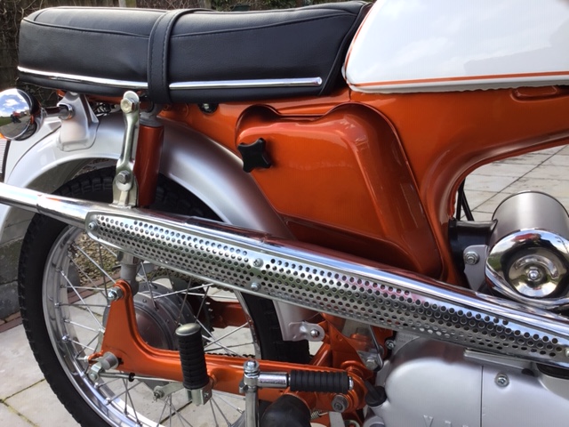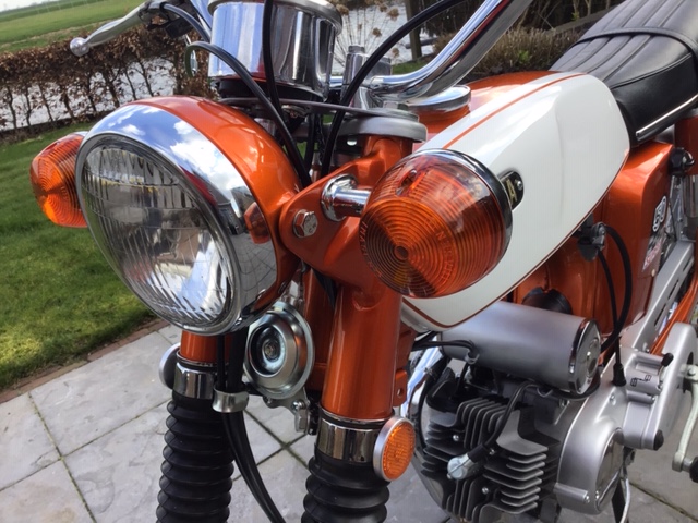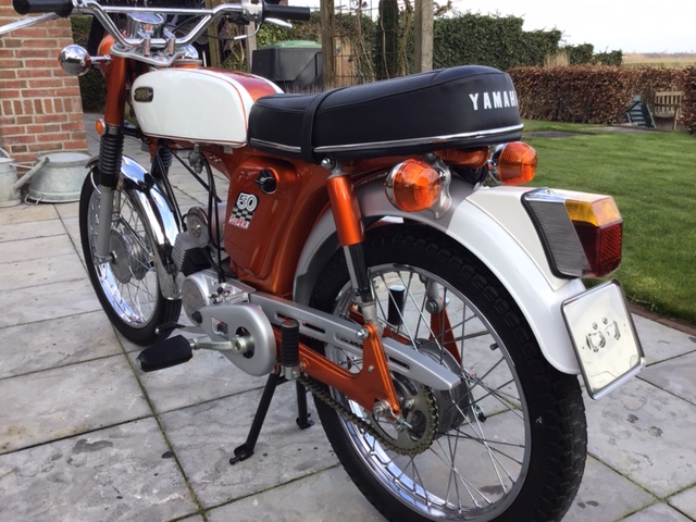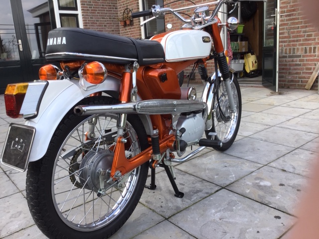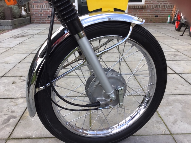 Na ongeveer een jaar was hij gereed, Tank en kappen opnieuw laten spuiten, nieuwe stickers erop en zoveel mogelijk originele onderdelen gemonteerd.