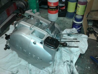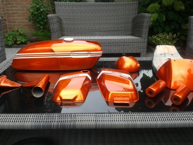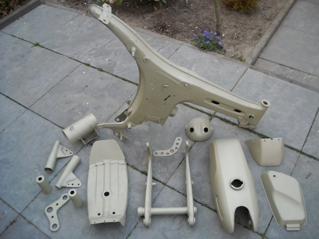 Deze ben ik nu aan het restauren, maar er moet nog veel gebeuren. Ik wil hem zoveel mogelijk in originele staat terug brengen met uitsluitend originele onderdelen. Het spuitwerk zwart en grijs spuit ik zelf. De oranje kleurdelen heb ik daarentegen in Engeland laten spuiten. Zie de foto's hieronder voor een impressie hiervan.