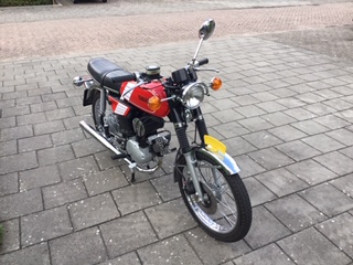 Ik heb hem helemaal uitgeklaard gehaald nieuwe velgen/-spaken, banden , frame laten poeder coating, verchromen, draaiboom, blok revisie, etc. etc.