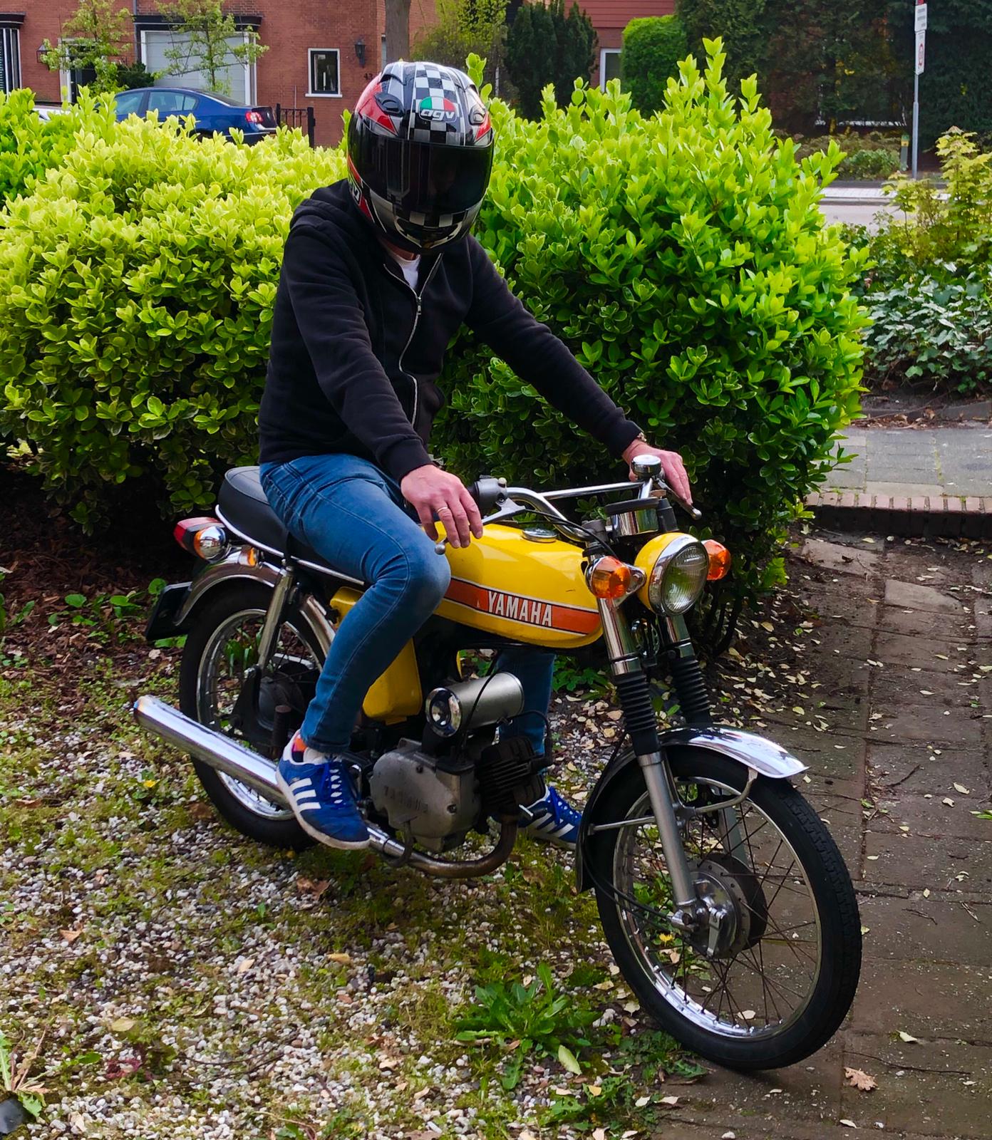 Ik heb gisteren uit nostalgie een Yamaha FS1 SS type 378 aangeschaft uit 1974. Van 1974 t/m 1977 heb ik niet alleen met Kreidler en Puch gereden, maar ook met Yamaha FS1 in verchroomde uitvoering, want dat was toen hot; net als special paint. Ik ben nog steeds in het bezit van een viertal Kreidler crossers van medio/eind 70er jaren en een Minarelli racertje, maar zo'n FS1 zat nog steeds in mijn gedachten. Met zijn knipperlichten, Kickstarter en contactslot, vond ik het vroeger al een kleine motor en dat gevoel heb ik nu gelukkig weer. Vandaag was mooi weer, dus lekker gereden en later wel weer opknappen.